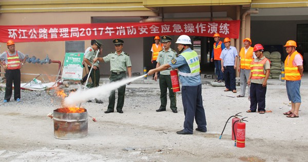演练前,消防大队官兵首先对火灾现场如何逃生、如何使用灭火器、高楼火灾逃生自救等知识进行讲解,还就日常生活中常见的电气设备、家具、燃气罐着火等几种火灾的扑救方法,使用干粉灭火器灭火进行示范操作,并让公路职工亲手操作演练。