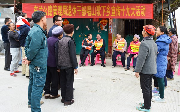 为深入学习贯彻党的十九大精神,近日,东兰公路管理局精心策划,着力创新宣传形式,组织梁桂凡、韦宗能、莫彩花和韦美秋等4名退休老职工,深入扶贫联系点板隆村开展山歌下乡传唱十九大精神活动,受到了当地群众的热情欢迎。