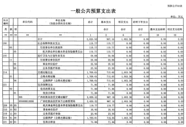 东兰公路管理局2016年决算公开
