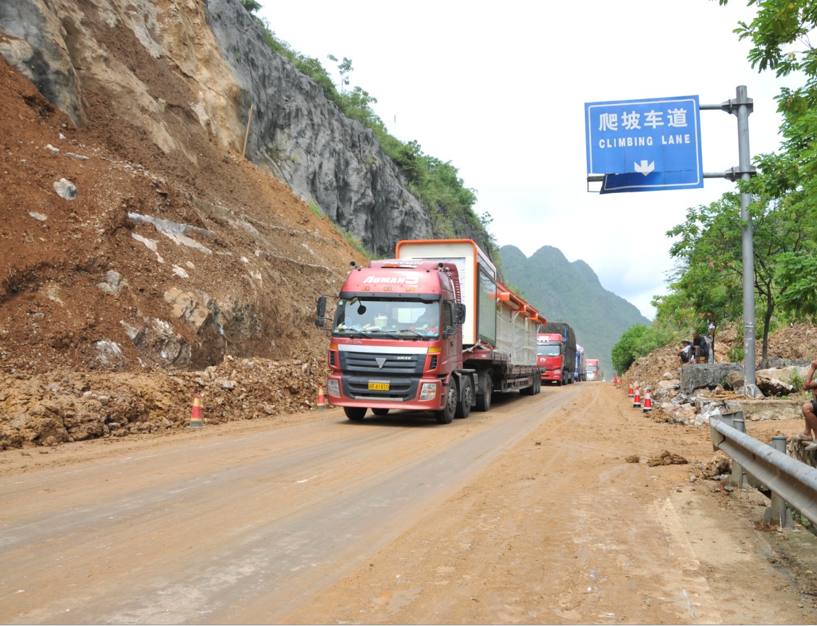 图三为公路抢通后车辆顺利通过西南出海大通道。