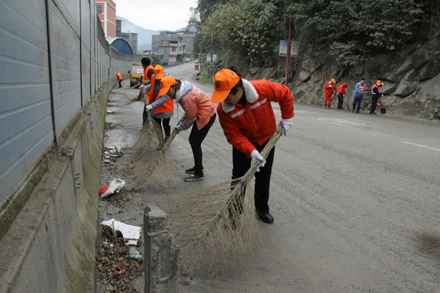 截至2月15日,共出动职工36人次、装载机1台、运输车4辆,清理各类垃圾3000平方米,清理公路水沟3公里,清扫路面2.5公里。