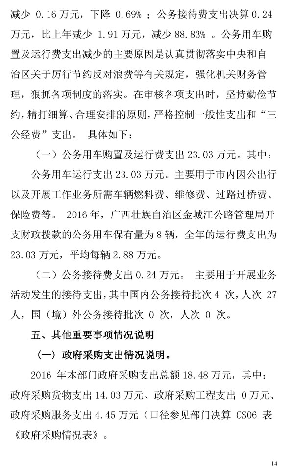 金城江公路管理局2016年决算公开