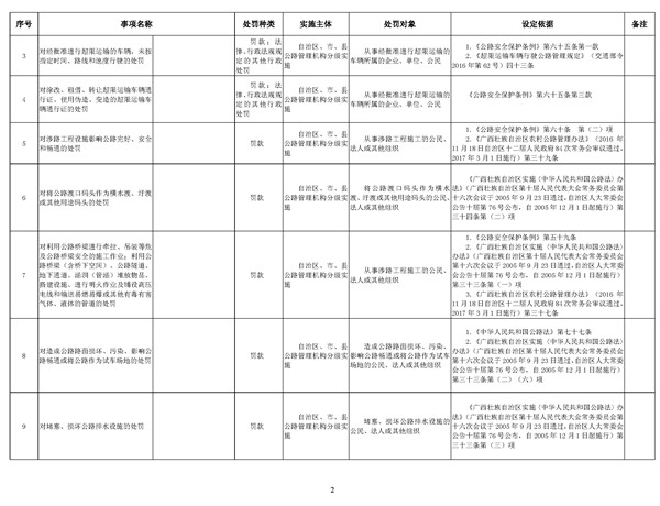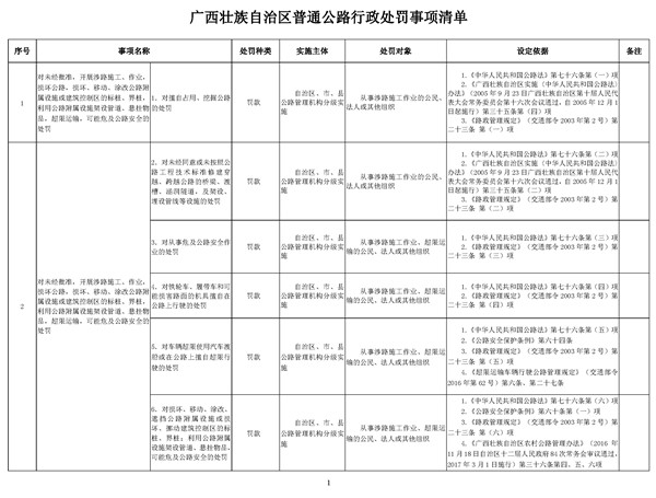 广西壮族自治区普通公路行政处罚事项清单广西壮族自治区普通公路行政处罚事项清单