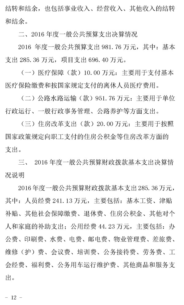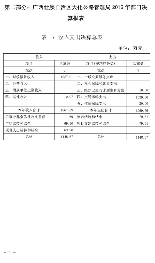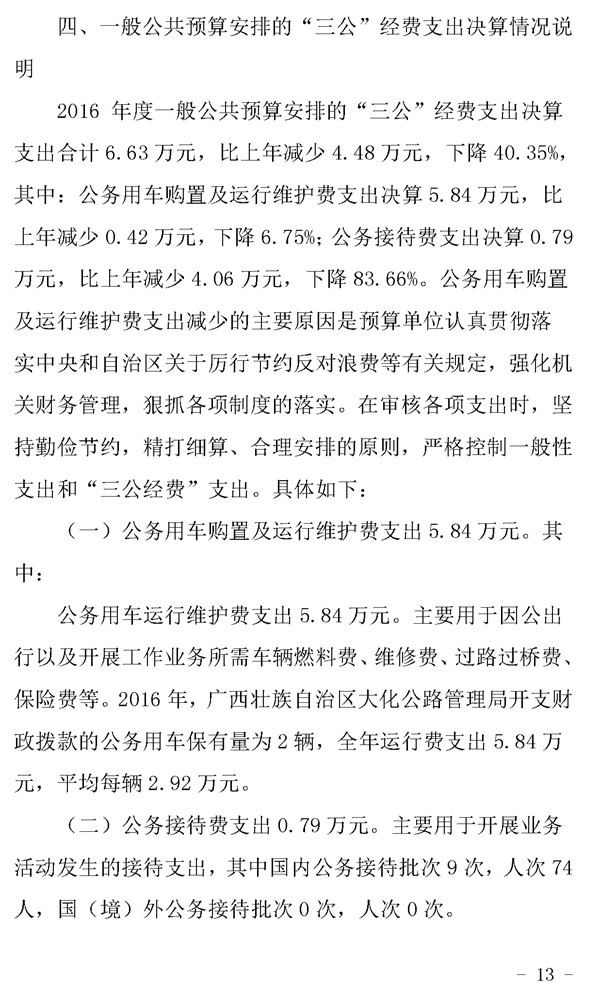 金城江公路管理局2016年决算公开