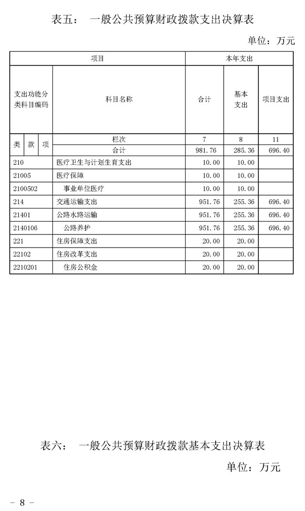 大化公路管理局2016年决算公开